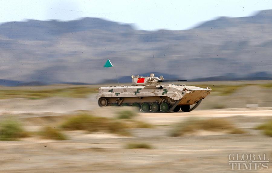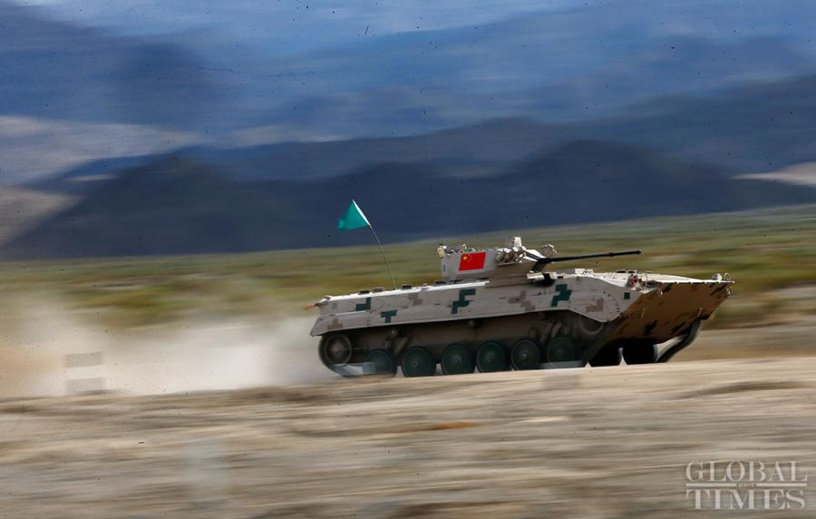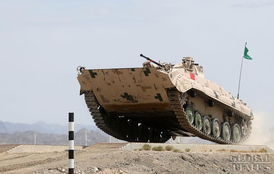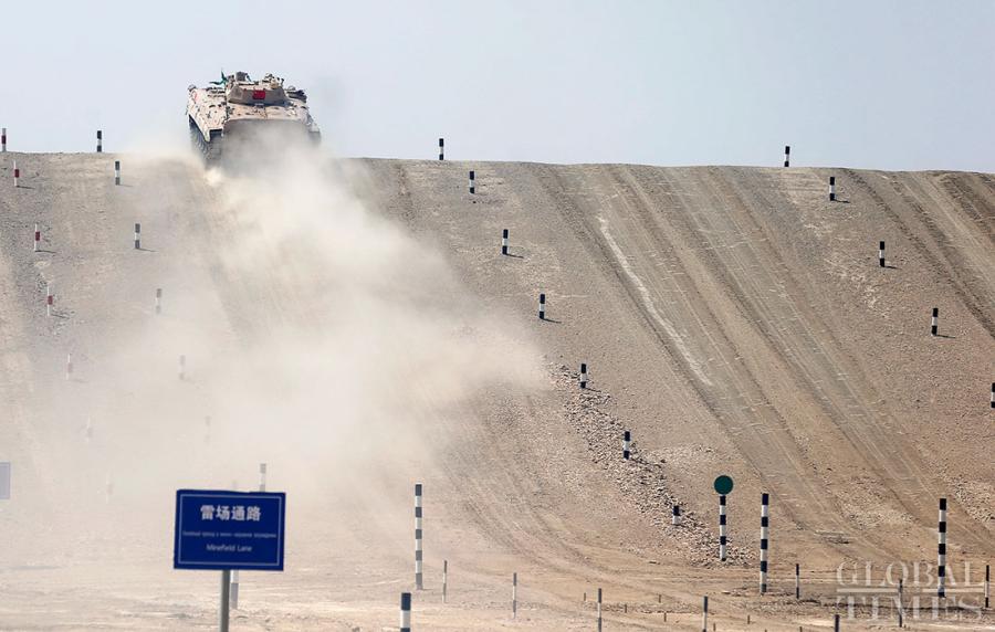 Chinese combat vehicle competes at 'Suvorov Attack' Individual Race on Sunday in Korla, NW China's Xinjiang. (Photo: Cui Meng/GT)
