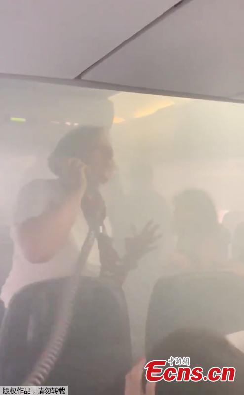 A smoke-filled cabin of British Airways aircraft is seen before an emergency disembark in Valencia, Spain August 5, 2019 in this still image obtained from social media video. (Photo/Agencies)