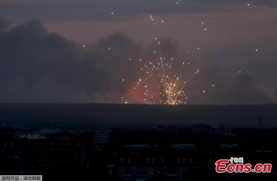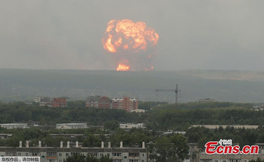 A view shows flame and smoke rising from the site of blasts at an ammunition depot near the town of Achinsk in Krasnoyarsk region, Russia August 5, 2019.(Photo/Agencies)