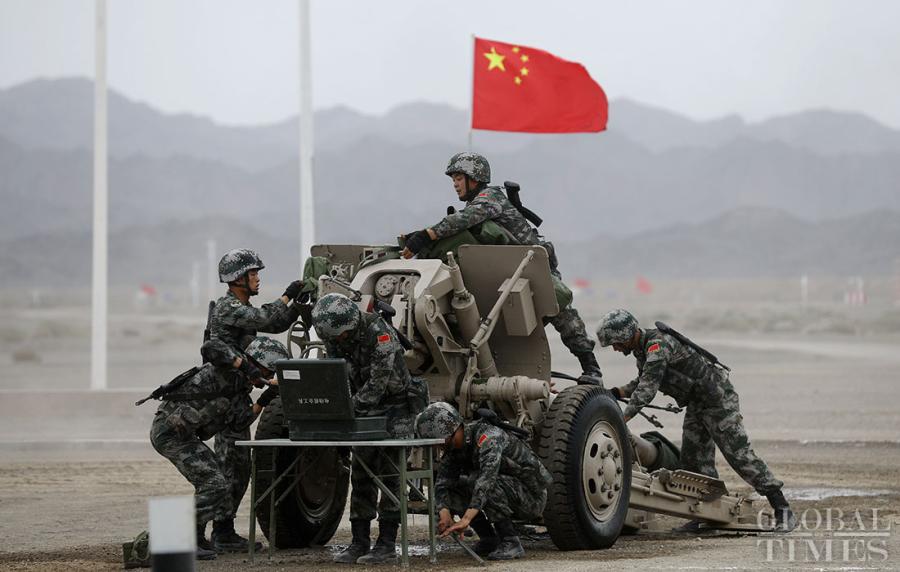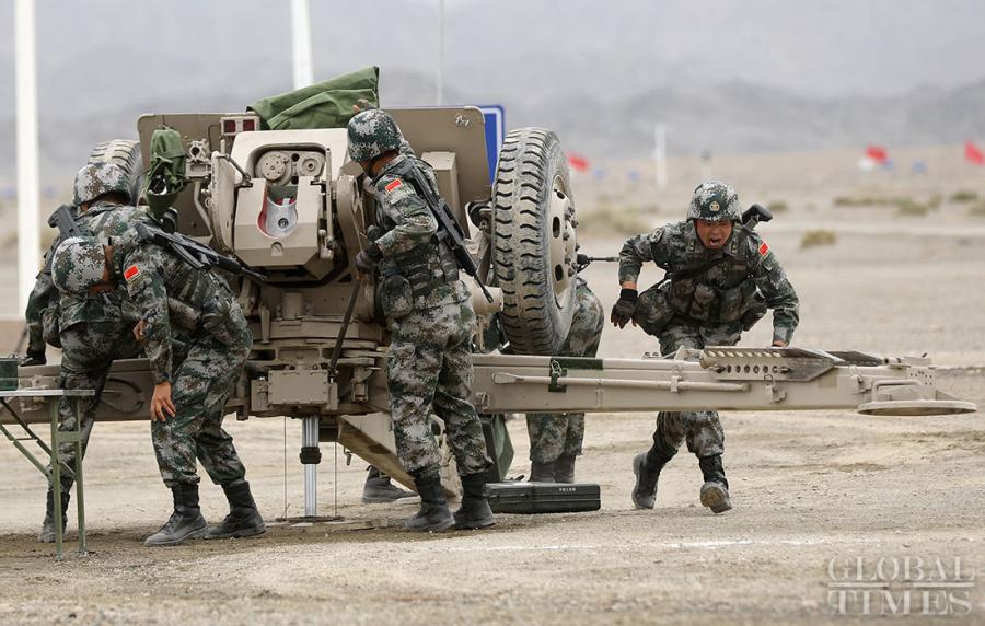 Chinese team competes at "Gunsmith Master" howitzer repairing race. (Photo: Cui Meng/GT)