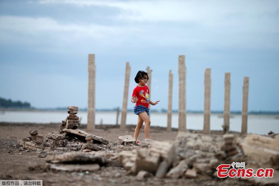A girl walks through the ruins of a Buddhist temple, which has resurfaced in a dried-up dam due to drought, in Lopburi, Thailand August 1, 2019. (Photo/Agencies)