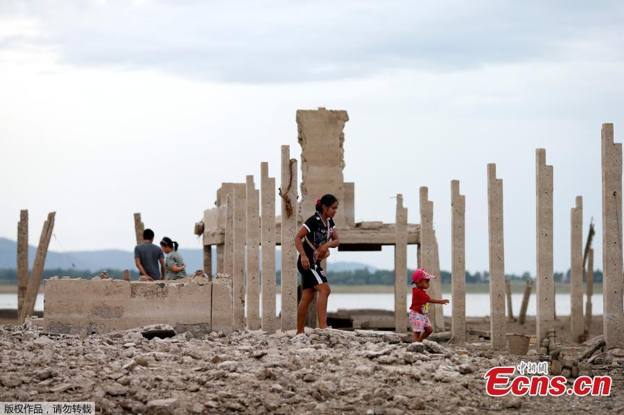 People walk through the ruins of a Buddhist temple, which has resurfaced in a dried-up dam due to drought, in Lopburi, Thailand August 1, 2019.(Photo/Agencies)