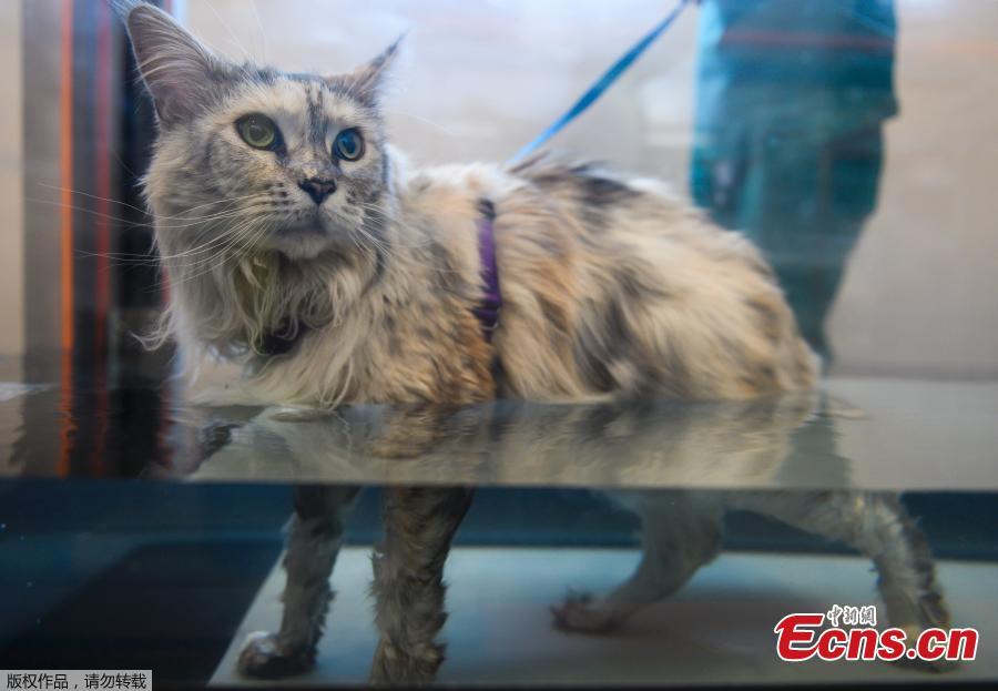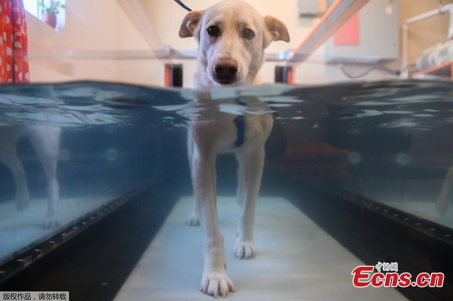 Bella walks in a hydrotherapy tank at the Friendship Hospital For Animals in Washington, DC, on July 25, 2019. Pets are now increasingly seen as genuine family members, said Christine Klippen, a veterinaian at the Friendship Hospital for Animals in Washington, DC. And this is particularly true for millennials, she said, who see themselves as moms and dads to their "fur babies." Given the higher incomes in the US capital, they often seek out the best pet care available. In the United States, 84.9 million households, or 68 percent, have a pet, according to Steve King, head of the American Pet Products Association. (Photo/Agencies)