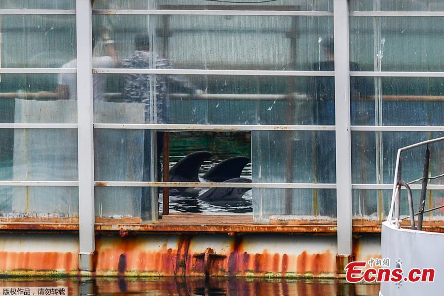 Killer whales are seen in an enclosure at a holding facility, known as "whale jail", in Srednyaya Bay on July 11, 2019. Three orcas were loaded onto trucks on July 11, 2019 as Russia continued to release whales being held in a controversial facility in its Far East. The secluded facility near the town of Nakhodka contains dozens of killer and beluga whales who were caught to be sent to aquariums but are to be set free after a global outcry and intervention by President Vladimir Putin. The facility near Nakhodka still contains a remaining five killer whales and 81 belugas. (Photo/Agencies)