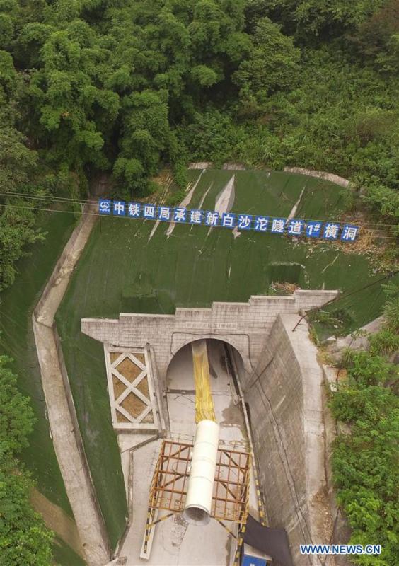 Aerial photo taken on Aug. 6, 2019 shows the New Baishatuo Tunnel in Fuling District of southwest China's Chongqing. The 10.004-km tunnel along the second railway line connecting Chongqing and Huaihua of central China's Hunan Province completed Monday after over three years of construction work. (Xinhua/Wang Quanchao)