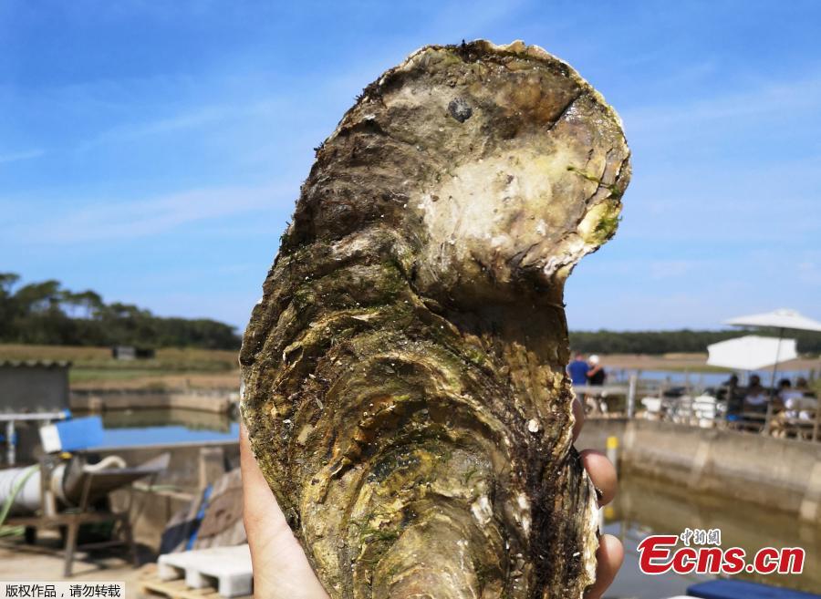 This picture taken on August 3, 2019 shows a giant oyster of 1,440kg, 25 centimeters high and aged between 13 and 15 years, found in Talmont-Saint-Hilaire, western France. (Photo/Agencies)