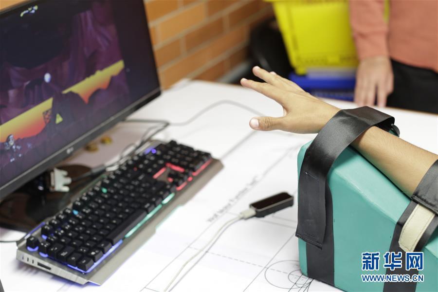 A participant tests a virtual reality game developed by researchers at the National Autonomous University of Mexico to assist neurological rehabilitation treatment for people with upper limb motor dysfunction in Mexico City, Mexico, July 30, 2019. (Photo/Xinhua)