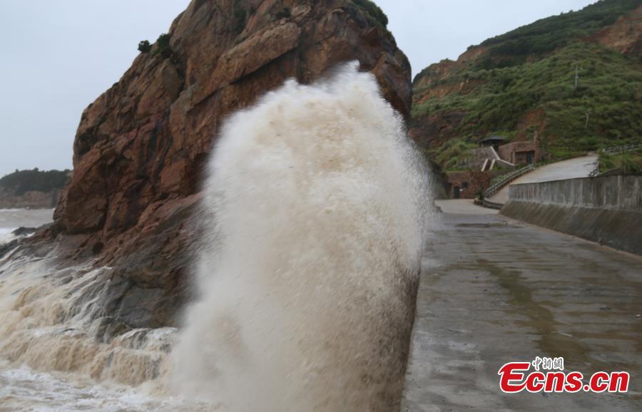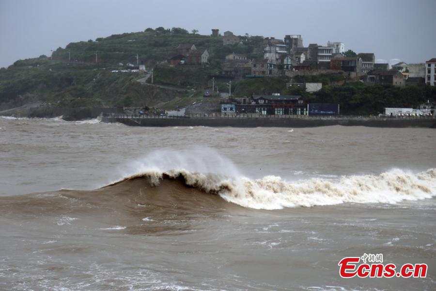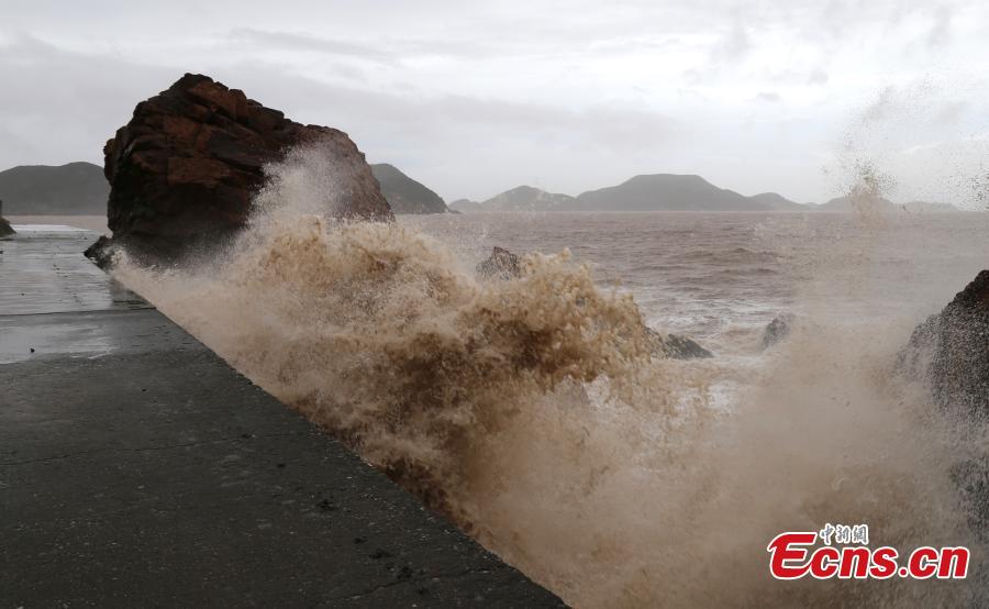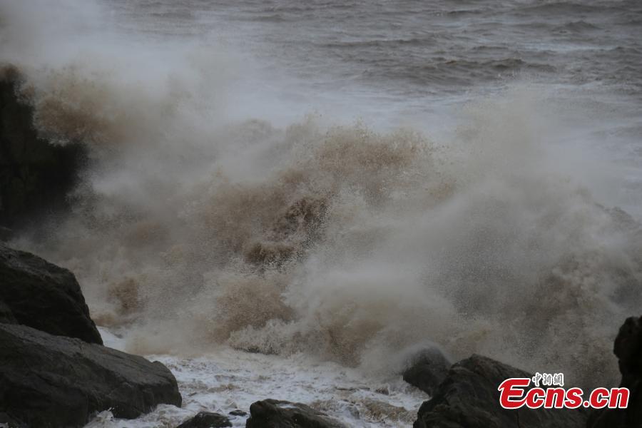 Huge waves, caused by Typhoon Lekima, pound the beach in Taizhou, East China’s Zhejiang Province, Aug.9, 2019. (Photo: China News service/ Jin Yunguo)