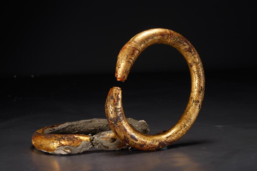 Cultural relics recovered on Nanhai One, such as gold bracelets, show the prosperous trade along the Maritime Silk Road in the Southern Song Dynasty (1127-1279). (Photo provided to China Daily)