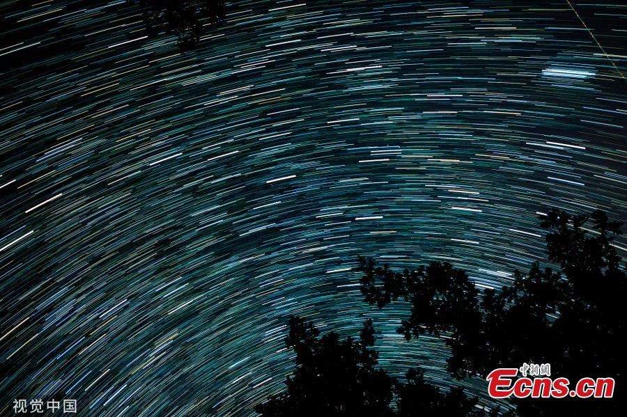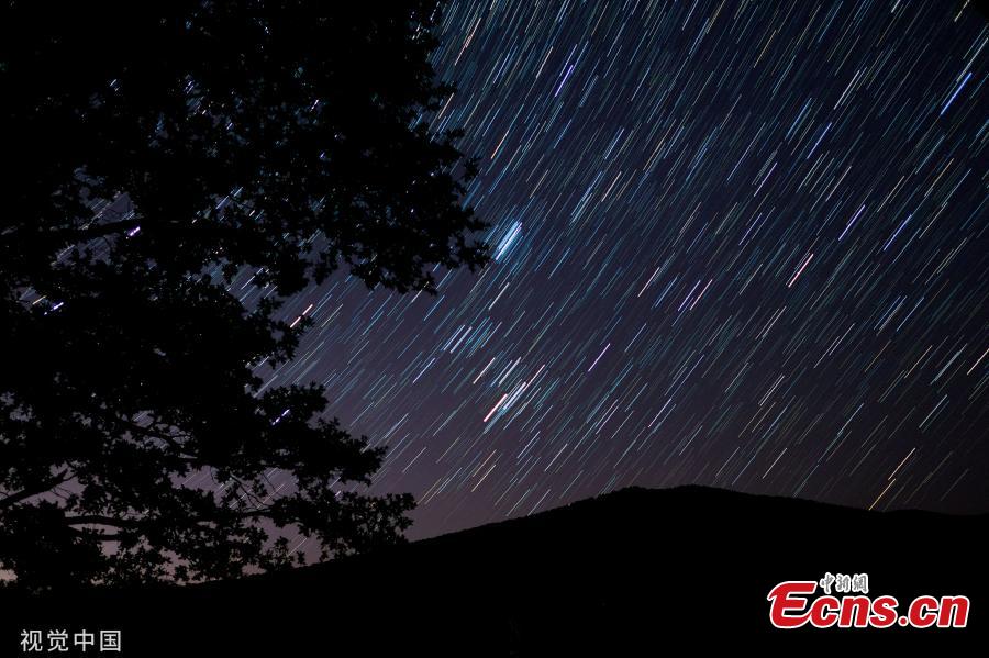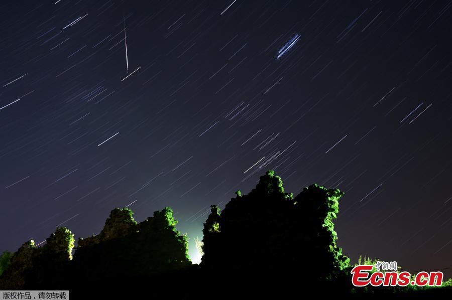A meteor streaks past the Milky Way in the night sky above Leeberg hill in Grossmugl, Austria, Aug. 12, 2019 during the Perseid shower. (Photo/Agencies)