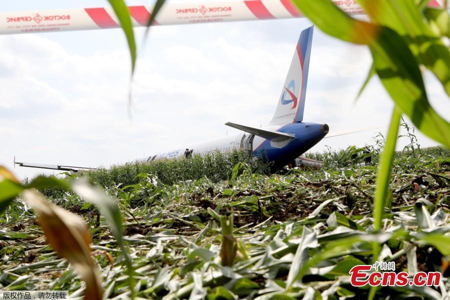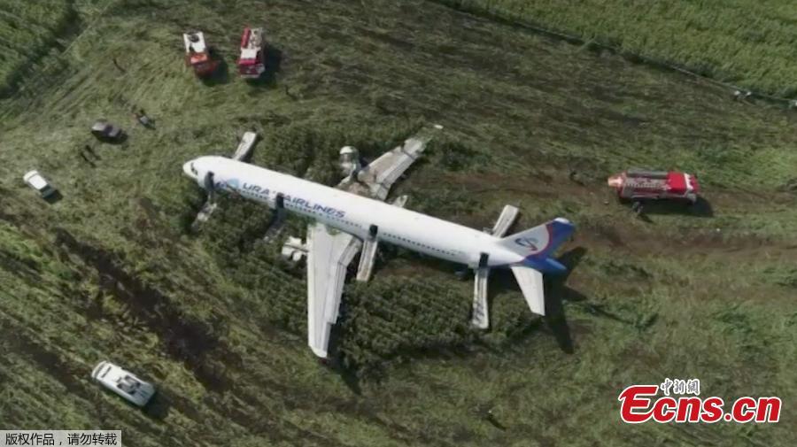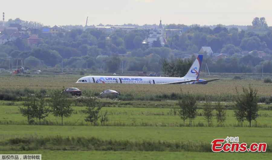 A view shows the Ural Airlines Airbus 321 passenger plane following an emergency landing in a field near Zhukovsky International Airport in Moscow Region, Russia August 15, 2019. (Photo/Agencies)