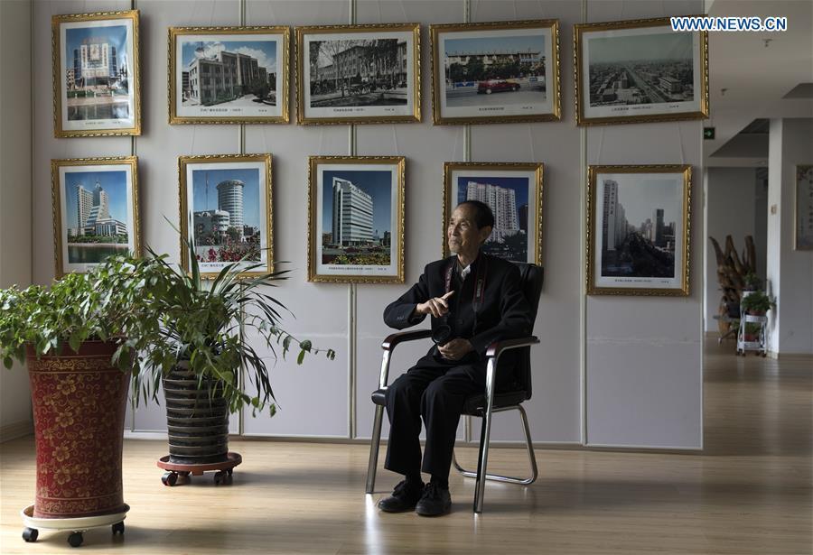 Li Hanchao is seen during his photograph exhibition in Korla, northwest China's Xinjiang Uygur Autonomous Region, April 9, 2019. 45 years ago, Li Hanchao bought a Chinese Seagull brand camera with an amount of his two months' salary, by which he started recording the change of his hometown of Korla. Li has walked to the furthest reaches of the city to shoot his most desirable photographs and the prints have slightly yellowed as years passed. "Korla changes greatly. Photos can freeze moments, and recall your memory. That may be the charming of photography", 81-year-old Li Hanchao said. As the years went by, cameras used by Li have gone through upgrades from the Seagull, Ricoh, Canon EOS5 to Canon EOS5D2. Though advanced in age, Li Hanchao now still keeps his passion on photography. (Xinhua/Fei Maohua)