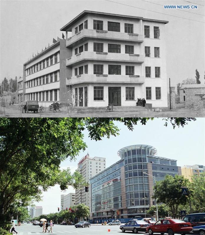 Combo photo taken by Li Hanchao shows a view of the Lixiang Hotel (up) in 1989 and a view of a commercial building built on the site of the Lixiang Hotel in 2006, in Korla, northwest China's Xinjiang Uygur Autonomous Region. 45 years ago, Li Hanchao bought a Chinese Seagull brand camera with an amount of his two months' salary, by which he started recording the change of his hometown of Korla. Li has walked to the furthest reaches of the city to shoot his most desirable photographs and the prints have slightly yellowed as years passed. "Korla changes greatly. Photos can freeze moments, and recall your memory. That may be the charming of photography", 81-year-old Li Hanchao said. As the years went by, cameras used by Li have gone through upgrades from the Seagull, Ricoh, Canon EOS5 to Canon EOS5D2. Though advanced in age, Li Hanchao now still keeps his passion on photography. (Xinhua)