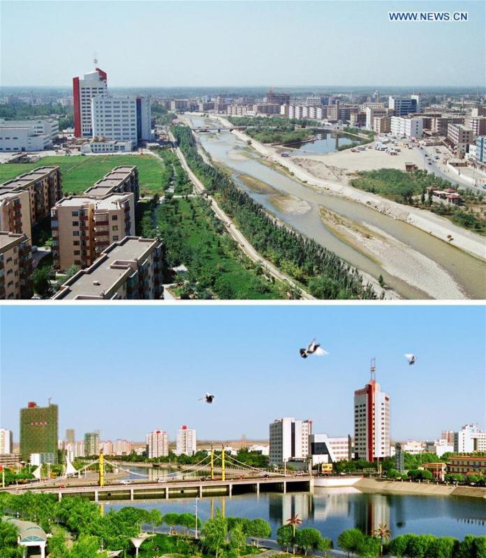 Combo photo taken by Li Hanchao shows views of the Kongque River in Korla, northwest China's Xinjiang Uygur Autonomous Region, in 1995 (up) and in 2006. 45 years ago, Li Hanchao bought a Chinese Seagull brand camera with an amount of his two months' salary, by which he started recording the change of his hometown of Korla. Li has walked to the furthest reaches of the city to shoot his most desirable photographs and the prints have slightly yellowed as years passed. "Korla changes greatly. Photos can freeze moments, and recall your memory. That may be the charming of photography", 81-year-old Li Hanchao said. As the years went by, cameras used by Li have gone through upgrades from the Seagull, Ricoh, Canon EOS5 to Canon EOS5D2. Though advanced in age, Li Hanchao now still keeps his passion on photography. (Xinhua)