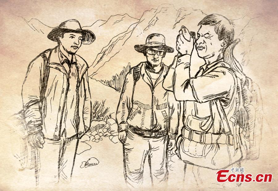 A pen and ink drawing by Chen Huawen, a teacher at China University of Geosciences (Wuhan), depicts geologists working in different scenes including mineral exploration, collecting specimens and field study. The teacher has created 20 such drawings that gained wide attention in the university. (Photo provided to China News Service)