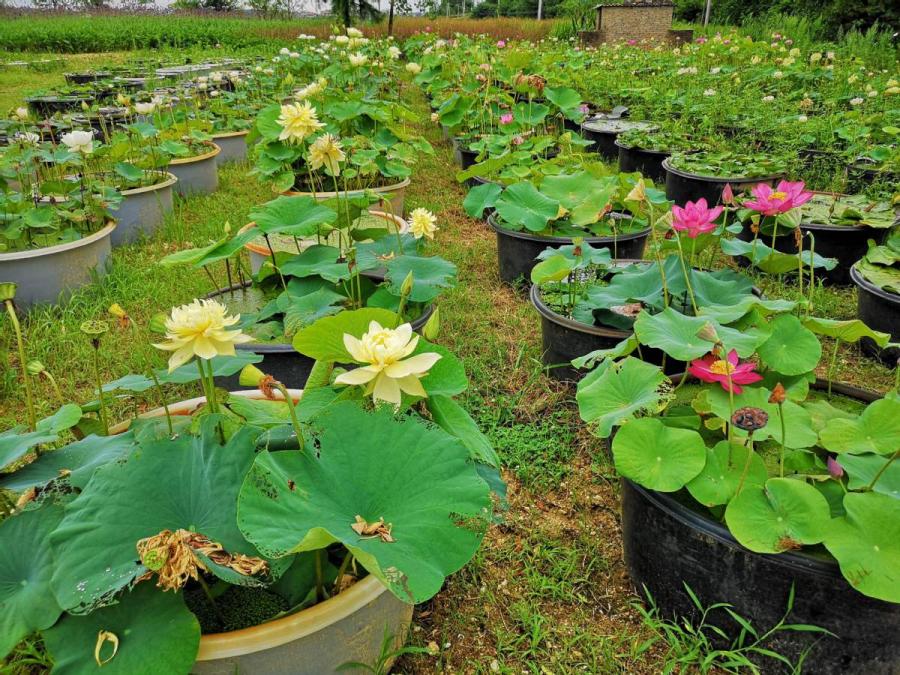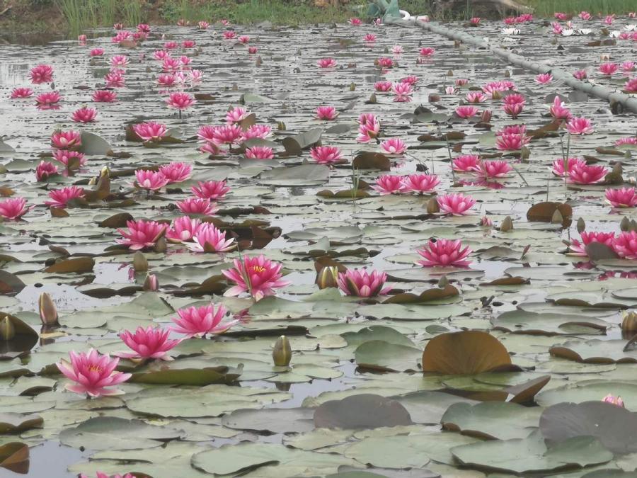 Other than tape grass, Xiao also grows plant kinds he successfully breeds, including two-colored water lily, lotus and canna.