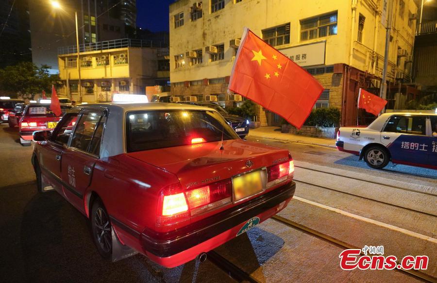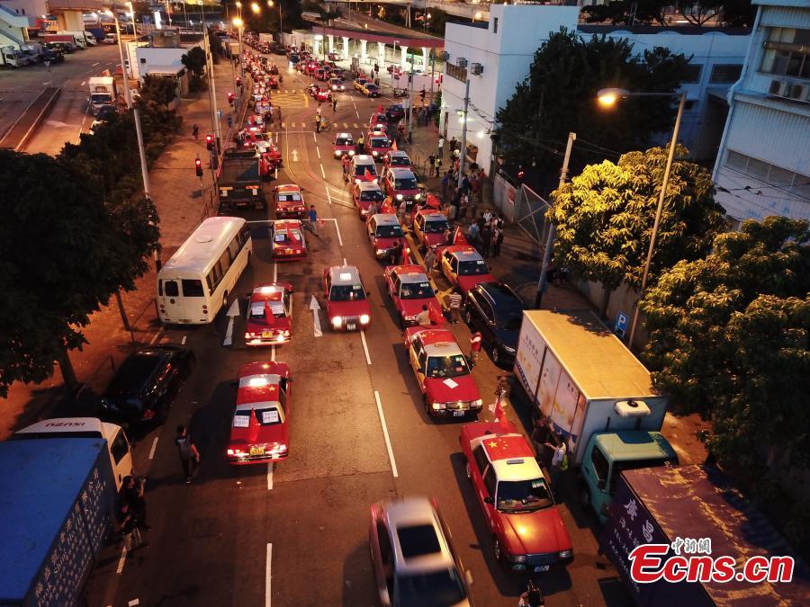 Taxis flying China's national flags rally on the main streets of Hong Kong on Aug. 23, 2019. Organized by the civil group Safeguard Hong Kong and the Hong Kong Taxi Drivers and Operators Association, the rally urged the Hong Kong community to oppose violence and restore social order as soon as possible, said the organizers. (Photo: China News Service/Li Zhihua)