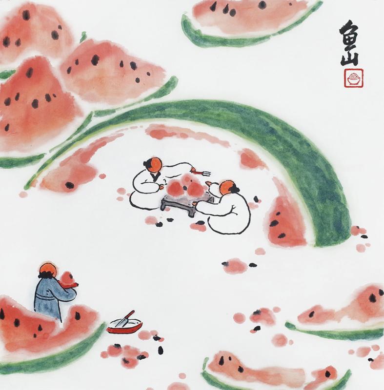 Zeng Renzhen creates a series of paintings which center around a diminutive character who likes to go on adventures, meet new people, take care of chores, and generally enjoy an enviably carefree life. (Photo provided to China Daily)