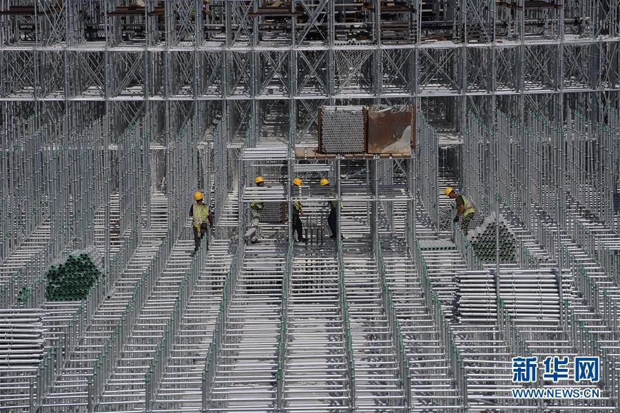 Construction work underway at the Xiongan Station of the Beijing-Xiongan Intercity Railway in North China’s Hebei Province, Aug. 27, 2019. The station, which has three floors above ground and two floors below, has a floor area of 470,000 square meters. Construction on the main underground section is now complete. (Photo: Xinhua/Xing Guangli)