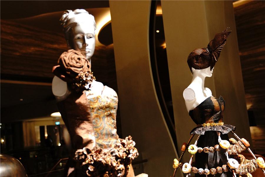 An exhibition for one's sense of aesthetics and sweet tooth alike took place in Colombo, Sri Lanka on Tuesday. It showcases fashion designs by local art college students made entirely out of chocolate. Decorated with chocolate puffs, macarons and other mouth-watering pastries, the dresses create a new fashion "feast" for visitors.