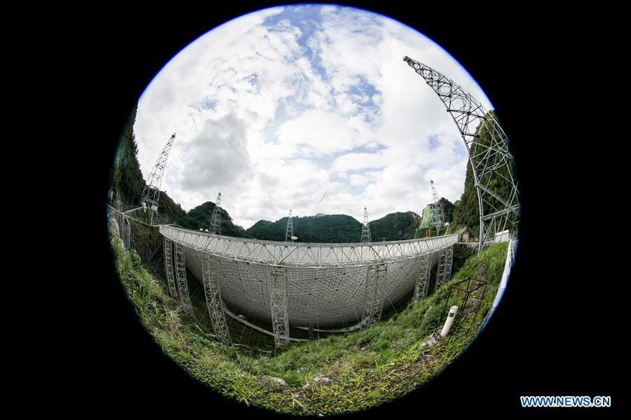 Photo taken on Aug. 27, 2019 shows China's Five-hundred-meter Aperture Spherical radio Telescope (FAST) in southwest China's Guizhou Province. China's FAST, the world's largest single-dish radio telescope, will greet the third anniversary of operation that began in September 2016. (Xinhua/Ou Dongqu)