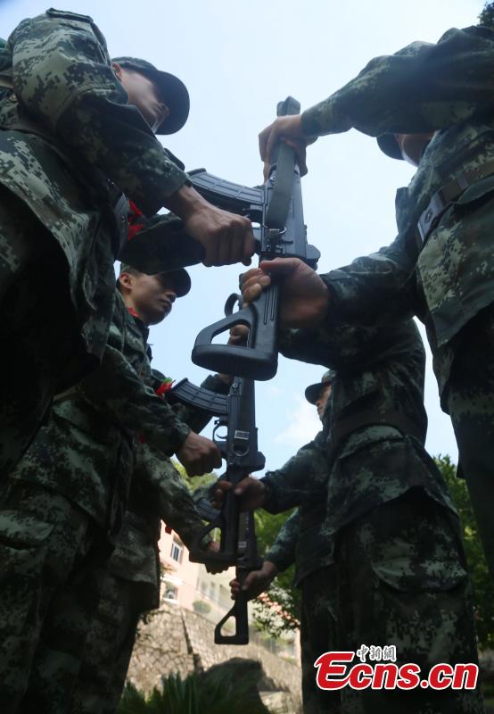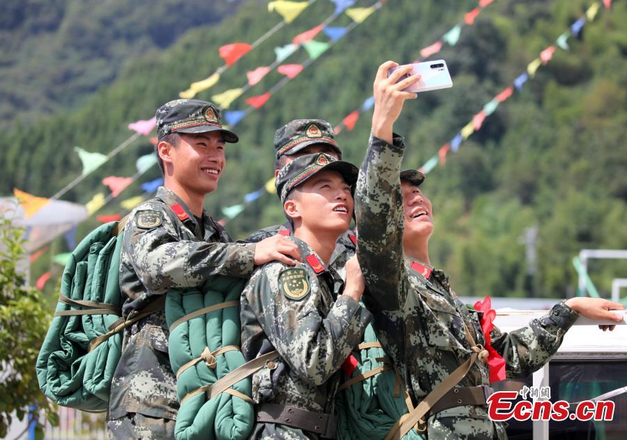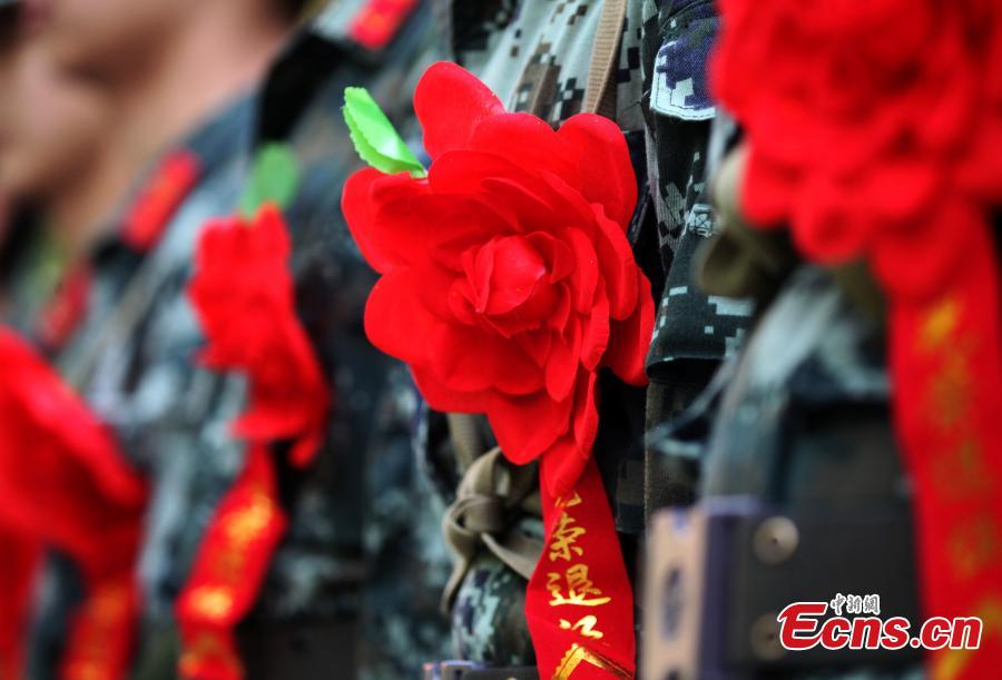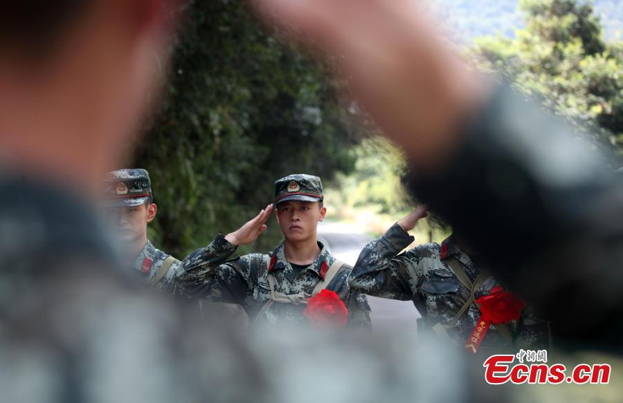 A ceremony held to mark the retirement of armed police, stationed in a deep mountain in Sanming City, Fujian Province, Aug. 29, 2019. (Photo: China News Service/Hu Xin)