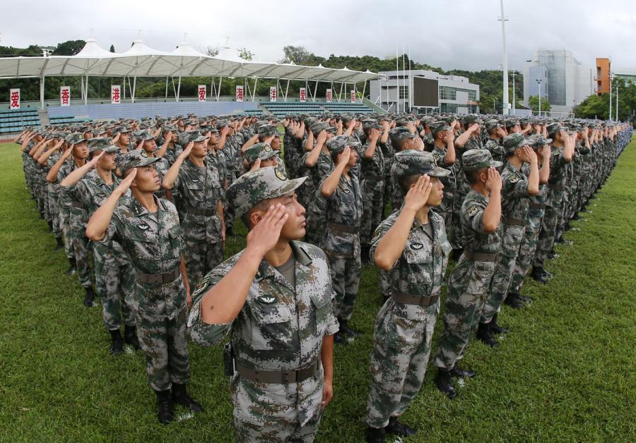 The Hong Kong Garrison of the Chinese People's Liberation Army (PLA) held national flag-raising ceremonies at its barracks Friday morning.