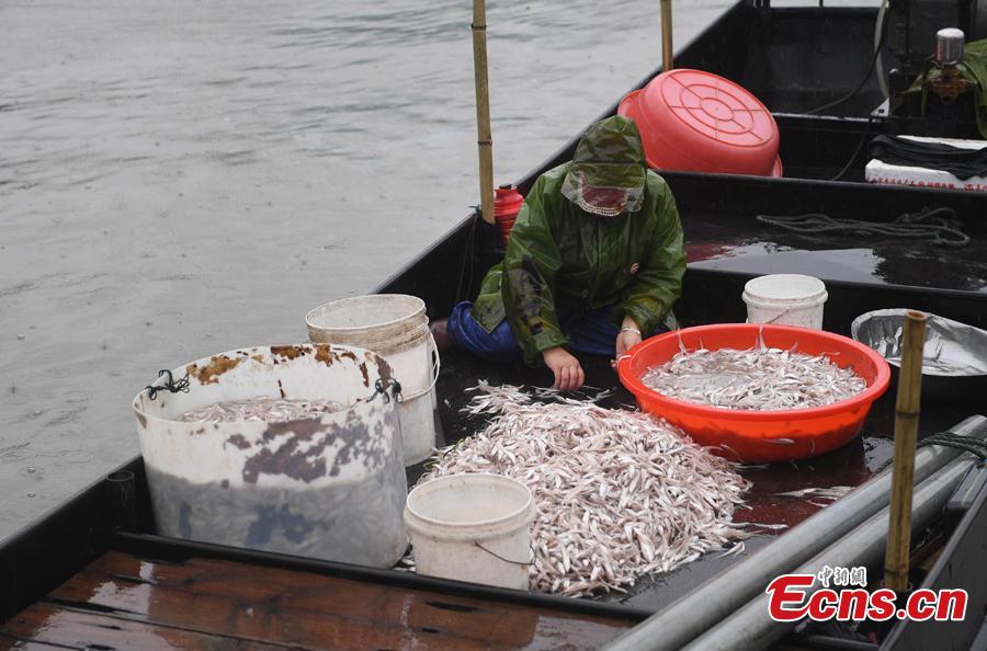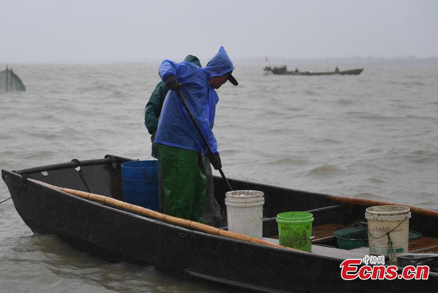 Fishermen start fishing in Taihu, east China's Zhejiang Province. The annual summer fishing ban took an end on Sunday. (Xinhua/Wang Kai)