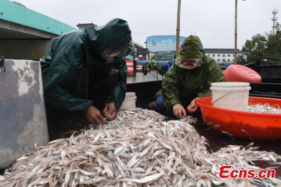 Fishermen start fishing in Taihu, east China's Zhejiang Province, Sept. 1, 2019. The annual summer fishing ban took an end on Sunday. (Xinhua/Wang Kai)