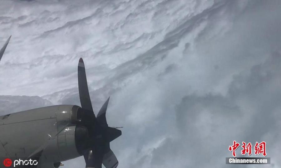 This photo provided by the National Hurricane Center shows a view of Hurricane Dorian from Hurricane Hunter P-3 Aircraft early Saturday, Aug. 31, 2019. Dorian has gained fearsome new muscle as an "extremely dangerous" Category 5 storm, bearing down. (Photo/IC)