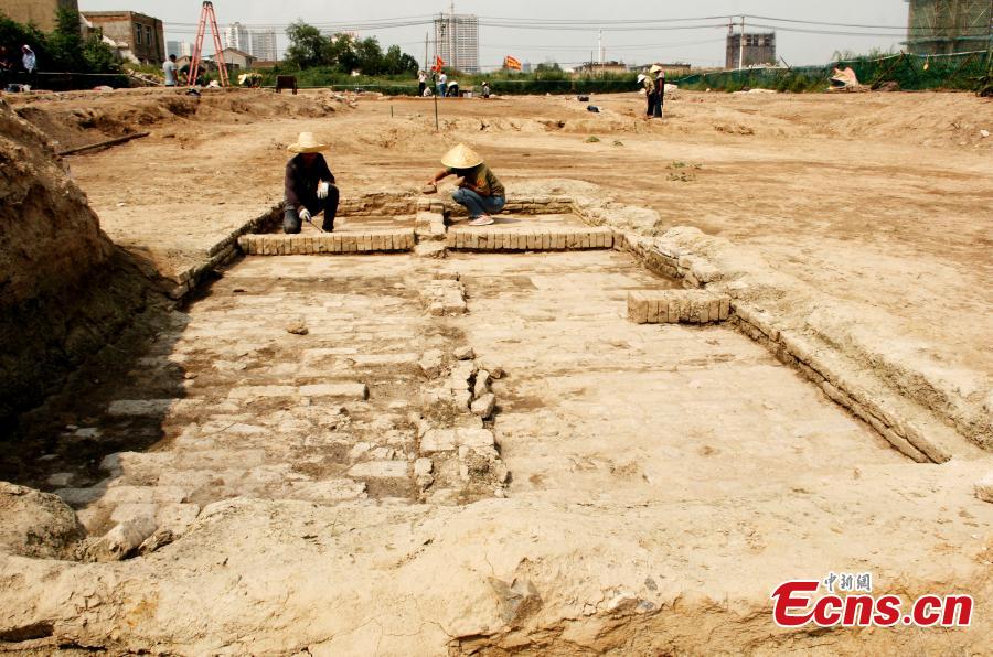 A view of an archaeological excavation at the ruins of a distillery that dates back to the Ming (1368-1644) and Qing (1644-1911) dynasties in Suixi County, Huaibei City, Anhui Province, Sep. 3, 2019. The largest remains of an ancient distillery to be found in China, the site was discovered last September during the renovation of a shantytown. Excavation work started in March and has uncovered a number of facilities used in the process of distilling as well as more than 600 relics including vases and bottles. (Photo: China News Service/Zhou Fangling)