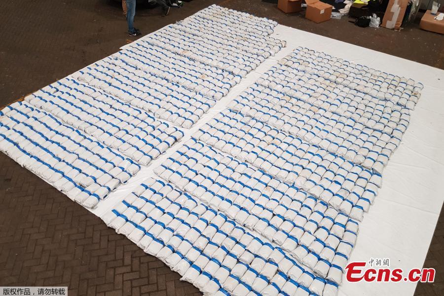 Photo released on Sept. 4, 2019, shows the heroin hidden under towels and dressing gowns on board a container ship in UK. (Photo/Agencies)