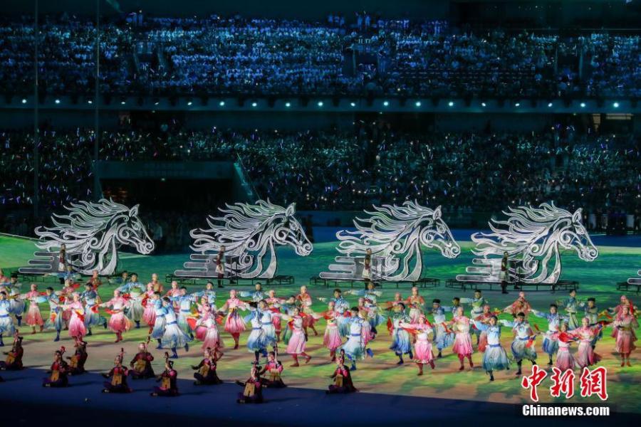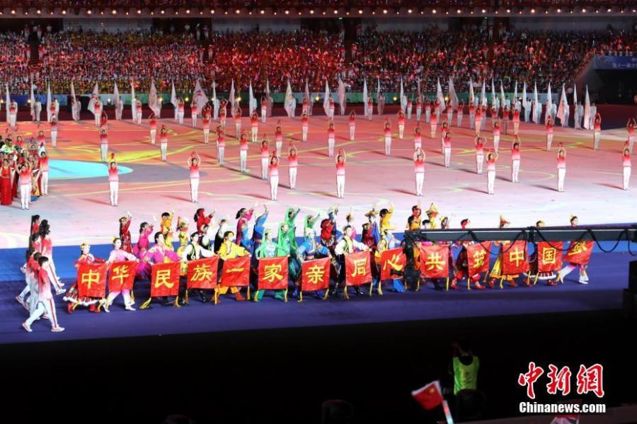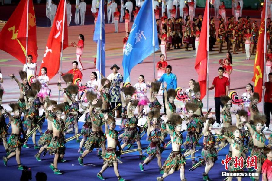 The opening ceremony of the 11th Chinese Ethnic Games in Zhengzhou, Henan Province, Sept. 8, 2019. More than 7,000 athletes from 34 delegations from around China, including a Taiwan Province delegation, will compete in 17 traditional sports encompassing 140 full events and 194 exhibition events during the 9-day Games, which wrap up on Sept. 16. (Photo: China News Service/Wang Zhongju)