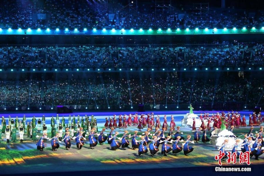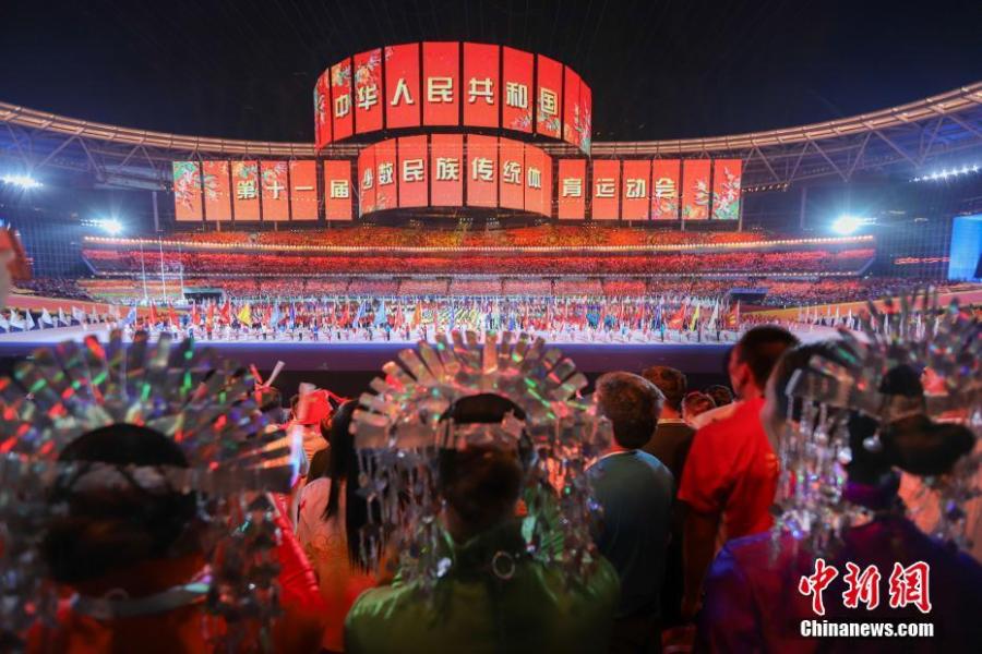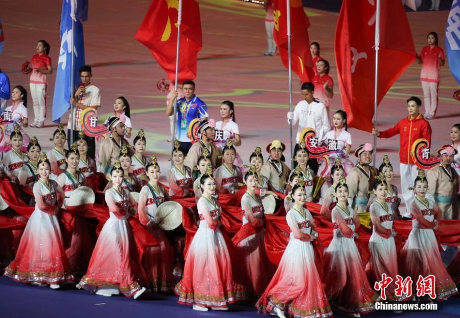 The opening ceremony of the 11th Chinese Ethnic Games in Zhengzhou, Henan Province, Sept. 8, 2019. More than 7,000 athletes from 34 delegations from around China, including a Taiwan Province delegation, will compete in 17 traditional sports encompassing 140 full events and 194 exhibition events during the 9-day Games, which wrap up on Sept. 16. (Photo: China News Service/Liu Peng)
