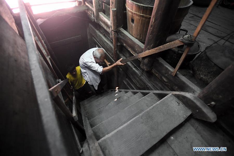 Tang Shangjun cooks food at home in Wuhan Village of Anhua County in Yiyang City, central China's Hunan Province, Sept. 8, 2019. A wooden house stands alone in the deep mountains covered by a vibrant leafy blanket of trees, not only as a dwelling, but also as a classroom where Tang Shangjun has been tutoring students for more than 20 years. Tang, a 92-year-old rural teacher, started tutoring children left behind by their migrant parents free of charge in Wuhan Village in 1997, 10 years after he retired from teaching in Anhua County. As the village has limited access to teaching resources, Tang makes the trek to the county, even Beijing to buy teaching materials tailored for students. He also reads books and takes notes every day to increase his reserve of test questions. A smart phone, which Tang asked others to buy in the county, would help when he cannot answer test questions on his own. "As long as kids love studying, I will stay at my post even within an inch of life," said Tang. (Xinhua/Chen Zeguo)