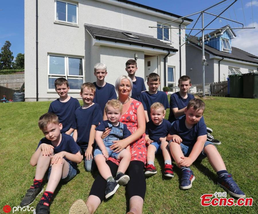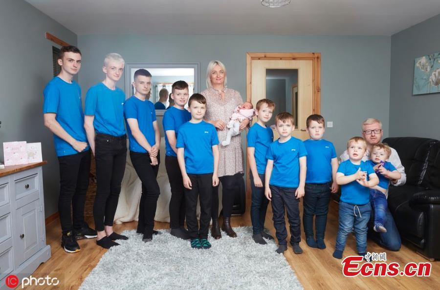 A mum is over the moon to welcome her first daughter after being the first woman in Britain to birth ten boys in a row. Alexis Brett, 39, from the Scottish Highlands welcomed baby Cameron along with partner David, 44 several days ago. Their sons are aged between two-years-old and 17. With the addition of a newborn, their family is now complete. (Photo/IC)