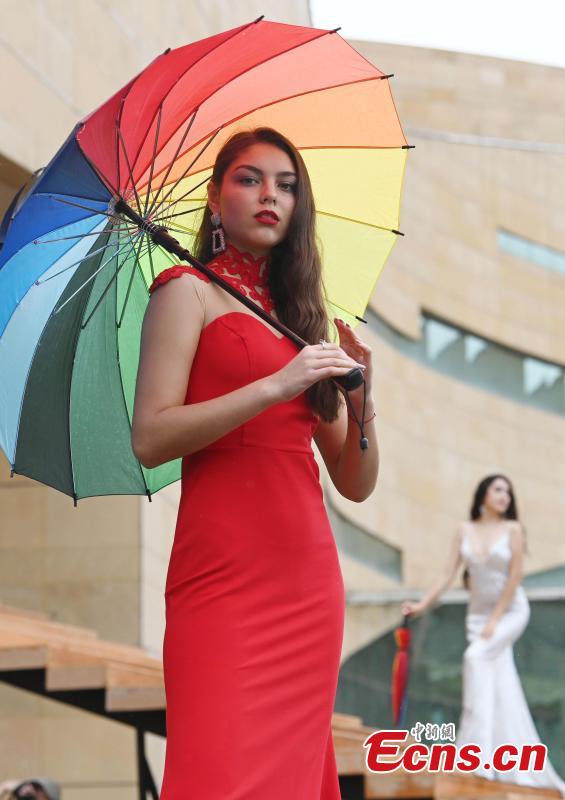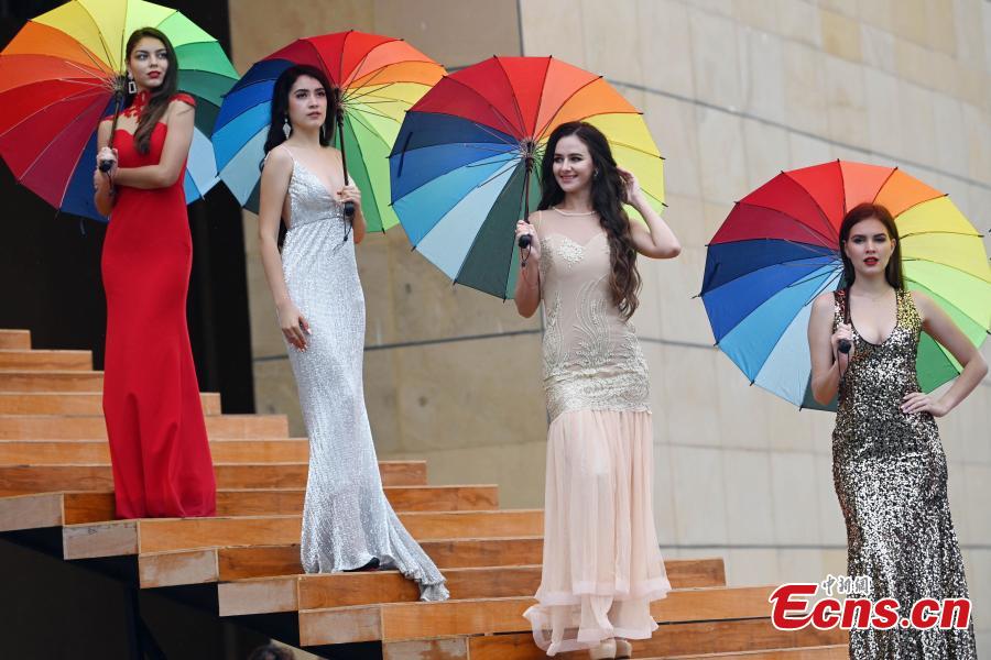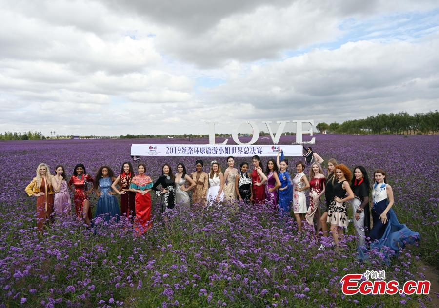 Contestants in the final of the Silk Road Miss Global Tourism 2019 contest take part in a photo tour in Zhongwei City, Northwest China’s Ningxia Hui Autonomous Region, Sept. 9, 2019. A total of 43 participants from 33 countries and regions joined the tour. (Photo: China News Service/Mao Jianjun)
