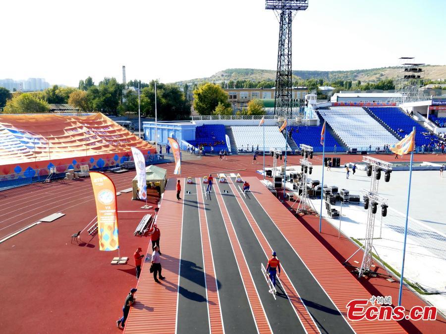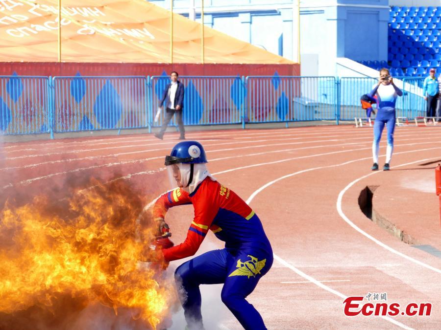 The 12-member Chinese Fire and Rescue Team has arrived in Saratov City, Russia for the World Championship in Fire and Rescue Sports. It is the first time for the Chinese team to participate in the international event that opened on Sept.11. (Photo: China News Service/Xie Peihua)