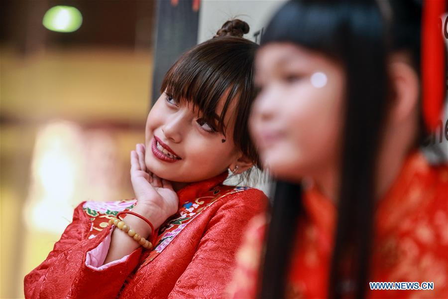Children dressed in traditional Chinese costumes are seen at a mall in Chinatown in Manila, the Philippines, Sept. 11, 2019. The Chinese Mid-Autumn Festival falls on Sept. 13 this year. (Xinhua/Rouelle Umali)