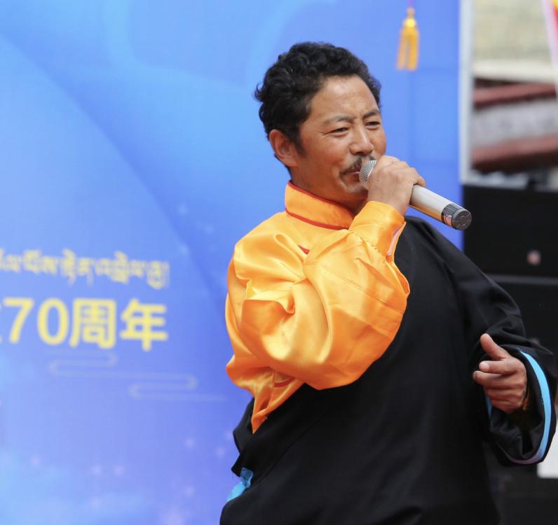 A man sings a Tibetan song at the Chinese Mid-Autumn Festival gathering in the Tsome village of Tibet's Doilungdechen district on Wednesday. (Photo/chinadaily.com.cn)