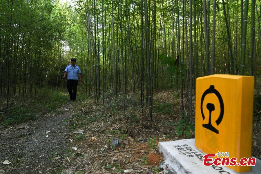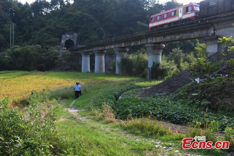 Police officer Huang Hongping, 57, inspects a section of the Anhui-Jiangxi Railway in a mountainous region in Xuancheng City, East China’s Anhui Province, Sept. 10, 2019. As the railway line passes through villages and schools, Huang and his team have made great efforts to improve people’s awareness of railway safety over three decades. (Photo: China News Service/Han Suyuan)