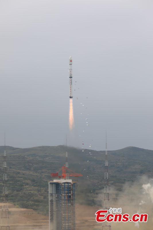 China sent a resource satellite and two small satellites into planned orbits from the Taiyuan Satellite Launch Center in north China's Shanxi Province on Thursday. They were launched on a Long March-4B carrier rocket at 11:26 a.m. (Beijing Time). The resource satellite, ZY-1 02D, will provide observation data for natural resources asset management, ecological monitoring, disaster prevention and control, environmental protection, urban construction, transportation and contingency management. (Photo: China News Service/ Zheng Taotao)