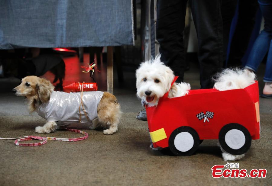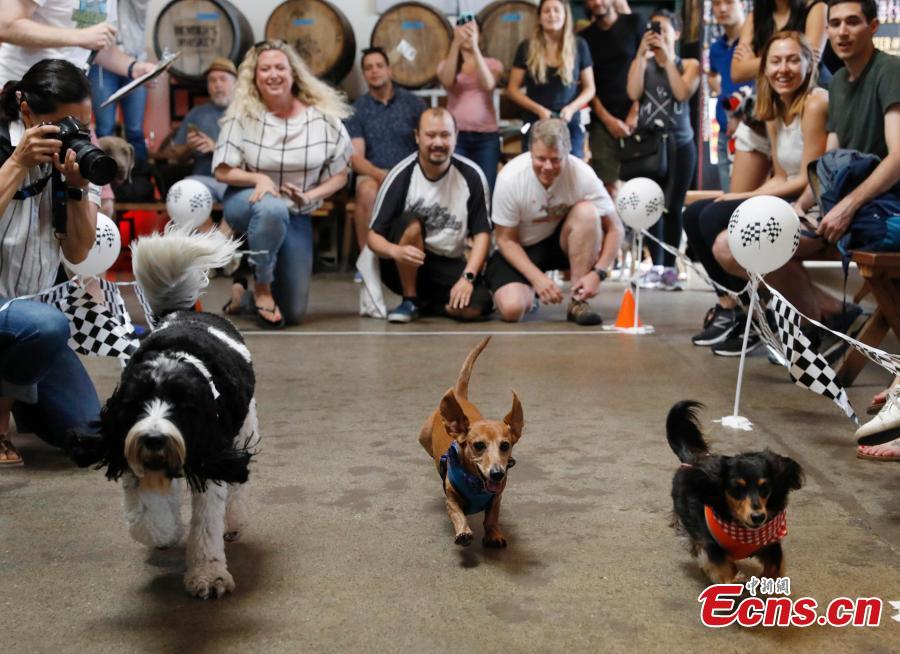 A dog race held in San Francisco, the U.S., Sept. 14, 2019. Dog owners dress and adorn their pups in one-of-a-kind car-inspired costumes for the race. (Photo: China News Service/Liu Guanguan)