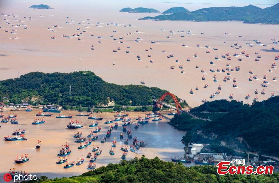Fishing vessels sail off Shipu Fishery Port for a new round of fishing season in Ningbo, east China's Zhejiang Province, Sept. 16, 2019. A fishing ban that had lasted for four and a half months in the East China Sea was lifted on Monday noon. In Ningbo, nearly 2,000 fishing vessels sailed off Shipu Fishery Port during a ceremony held on the same day to celebrate the start of a new round of fishing season. (Photo/IC)