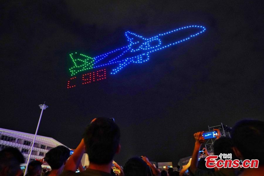 Photo taken on Sept. 17, 2019 shows a drone display at the Tianmu Lake Campus of Nanjing University of Aeronautics and Astronautics in Nanjing, Jiangsu Province as part of celebrations to mark the 70th anniversary of the founding of the People’s Republic of China. As music played, 300 drones took off to form Chinese characters such as Love China or iconic patterns including Tiananmen. (Photo: China News Service/Yang Bo) Photo taken on Sept. 17, 2019 shows a drone display at the Tianmu Lake Campus of Nanjing University of Aeronautics and Astronautics in Nanjing, Jiangsu Province as part of celebrations to mark the 70th anniversary of the founding of the People’s Republic of China. As music played, 300 drones took off to form Chinese characters such as Love China or iconic patterns including Tiananmen. (Photo: China News Service/Yang Bo)