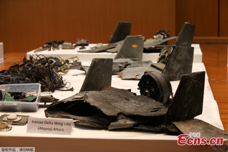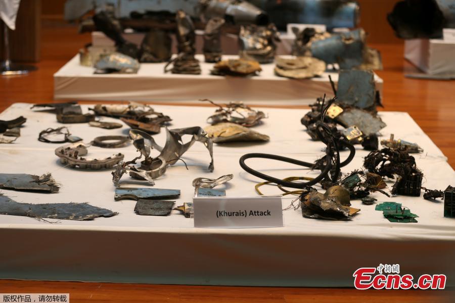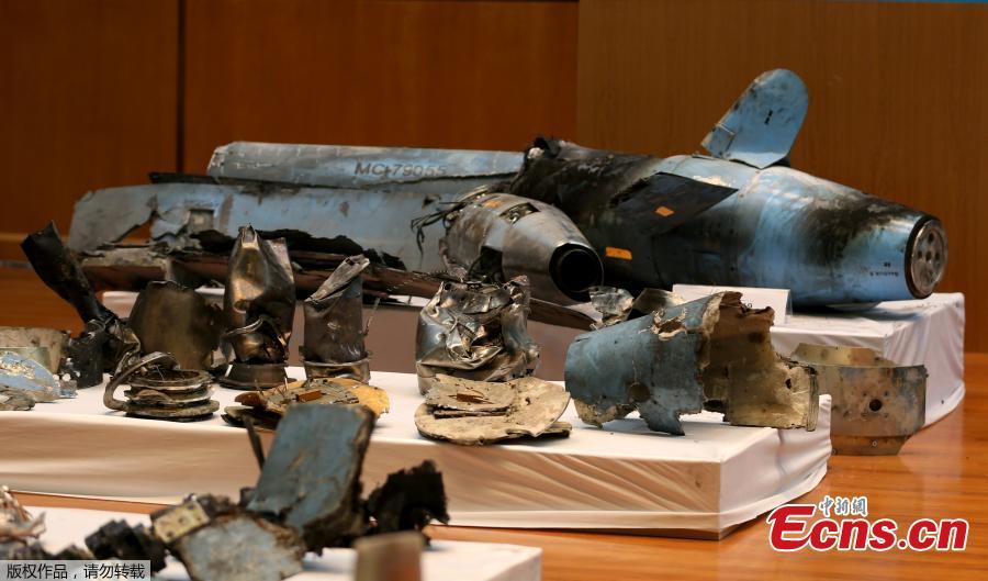 Remains of the missiles which Saudi government says were used to attack an Aramco oil facility, are displayed during a news conference in Riyadh, Saudi Arabia September 18, 2019.(Photo/Agencies)