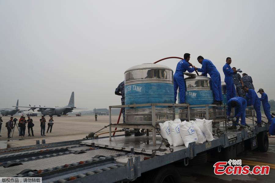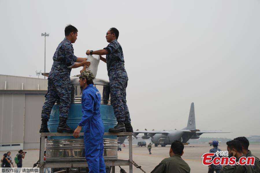 Military loading water and salt in to water tank at base while sky is shrouded with haze at Subang Military airbase in Subang, Malaysia, Thursday, Sept. 19, 2019. Indonesian forest fires spread health-damaging haze across the country and into neighboring Malaysia and Singapore. Malaysian authorities used cloud seeding Monday in an attempt to clear the thick haze engulfing the nation's capital.(Photo/Agencies)