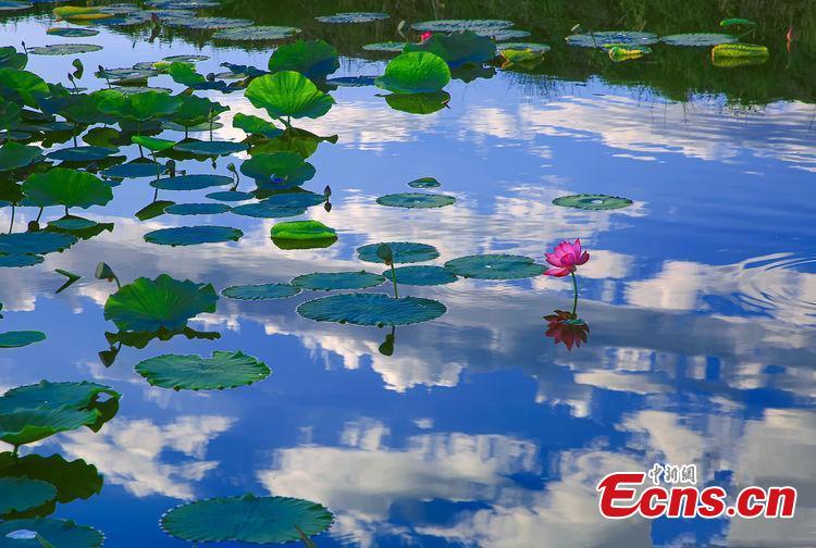 Photo taken in September, 2019 shows the lotuses and lotus leaves in the Bosten Lake in southern Xinjiang. (Photo: China News Service/Liu Hao)
