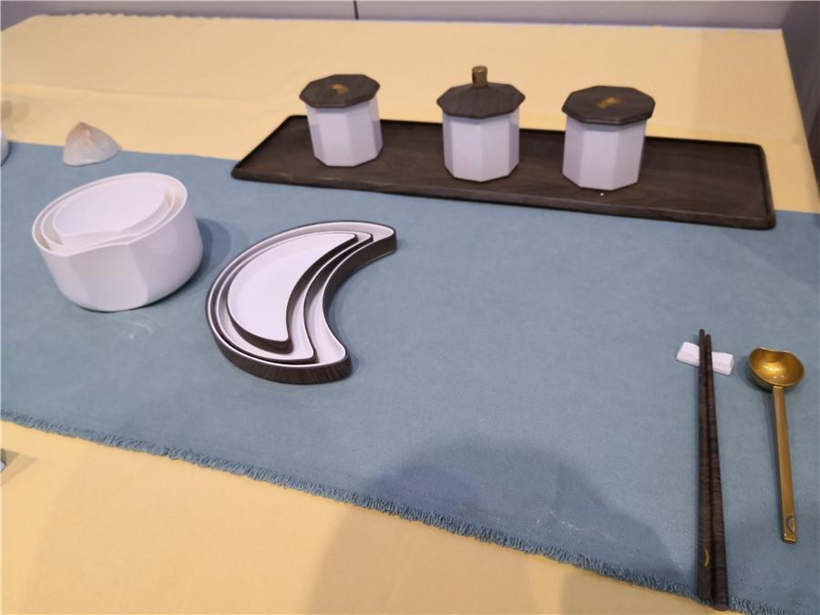Dunhuang-themed tea ware and table ware are on display. (Photo by CECE/For chinadaily.com.cn)
