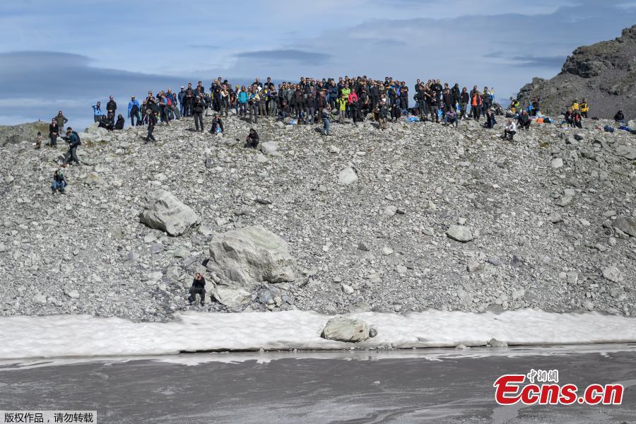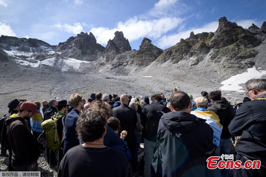 People take part in a symbolic farewell ceremony to mark the "death" of the Pizol glacier (Pizolgletscher) on September 22, 2019 above Mels, eastern Switzerland. In a study released earlier this year, researchers of the ETH technical university in Zurich determined that more than 90 percent of Alpine glaciers will disappear by 2100 if greenhouse gas emissions are left unchecked. (Photo/Agencies)